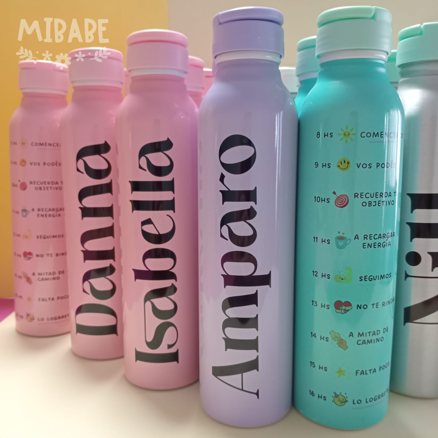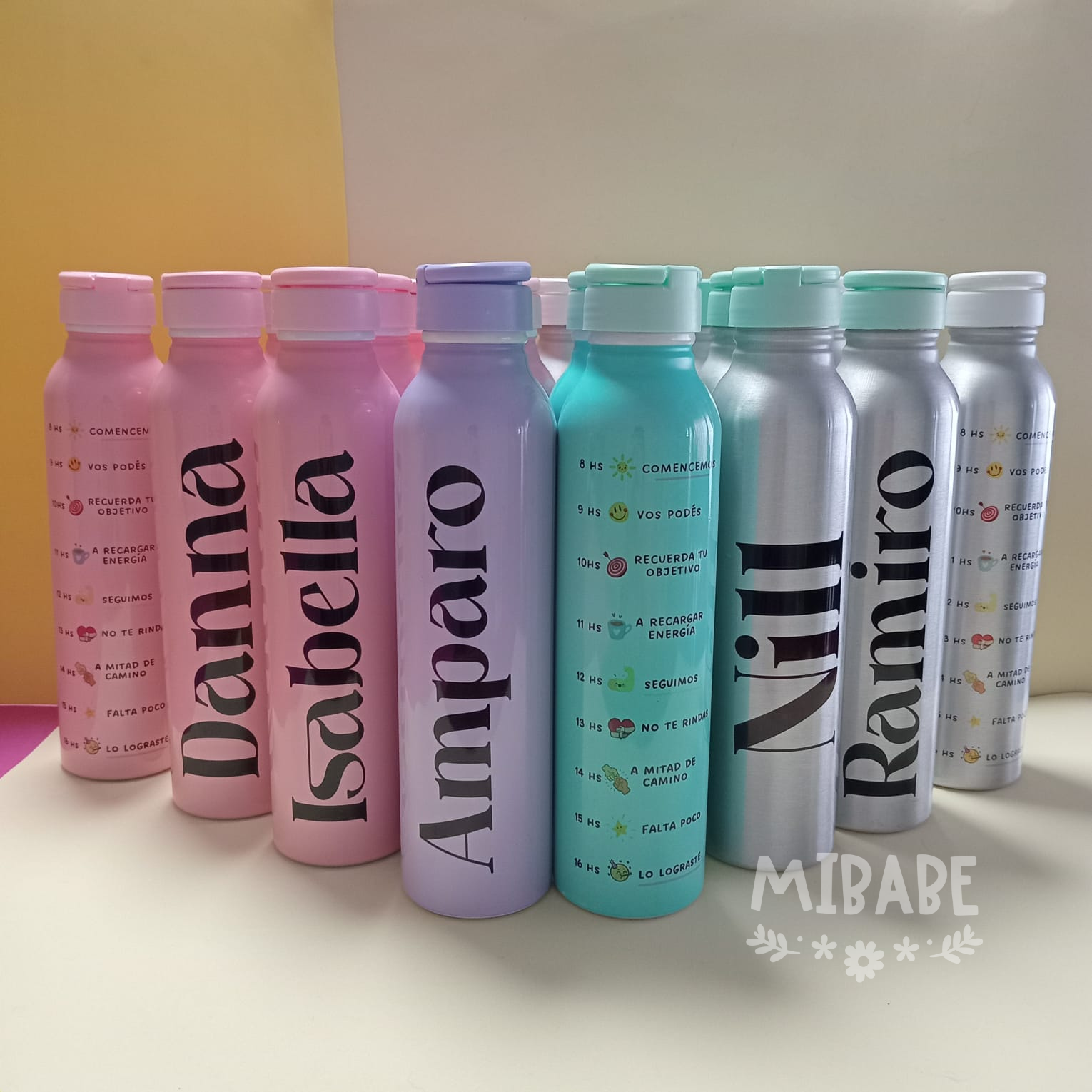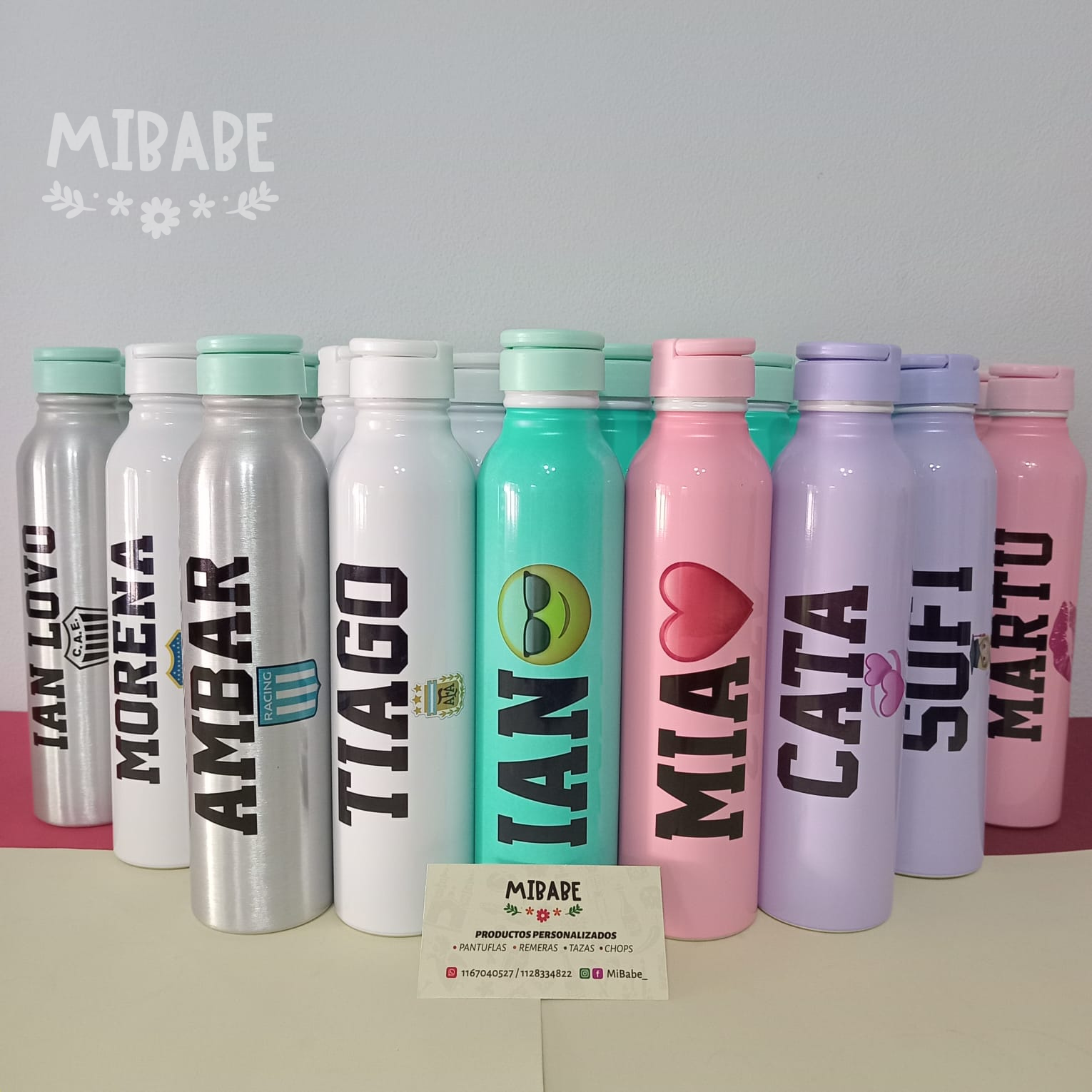 Capacidad 1/2 Lts. Colores: Blanca – plateada – rosa – verde agua.