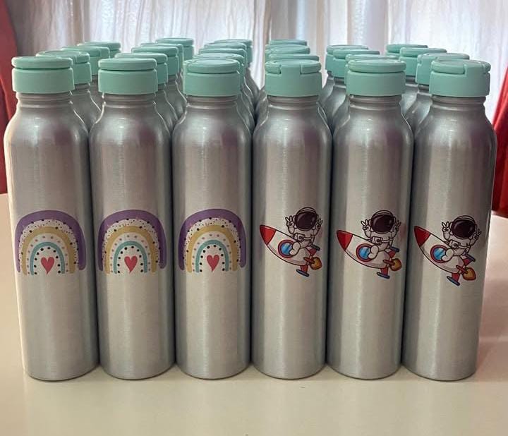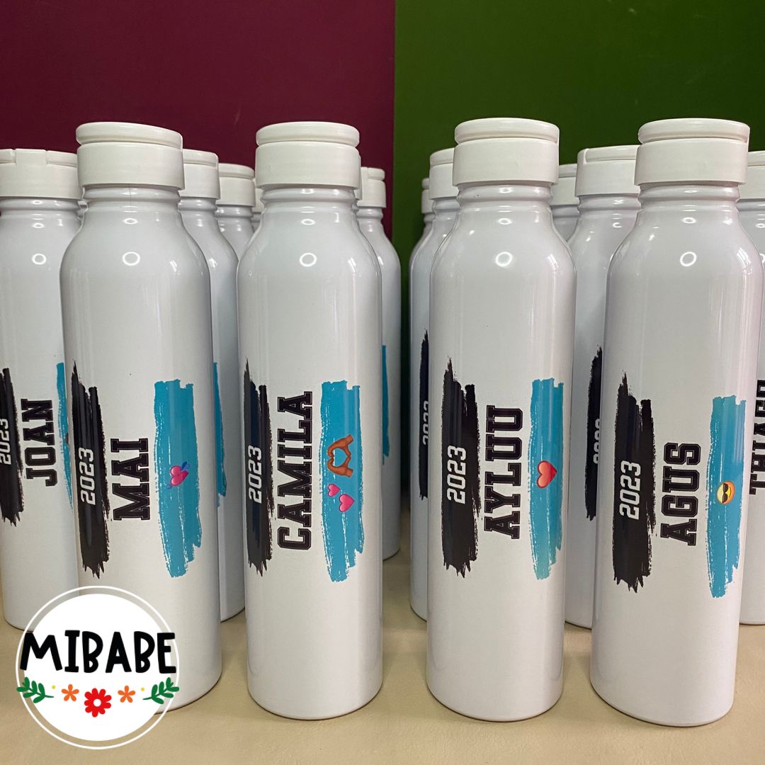Botella de aluminio con tapa a rosca.
