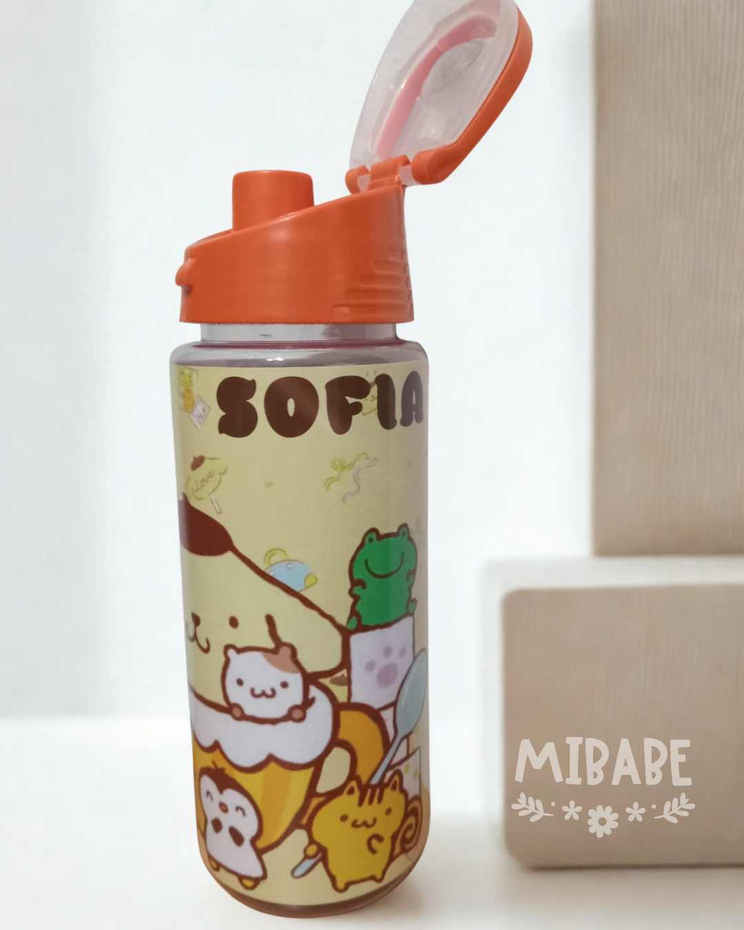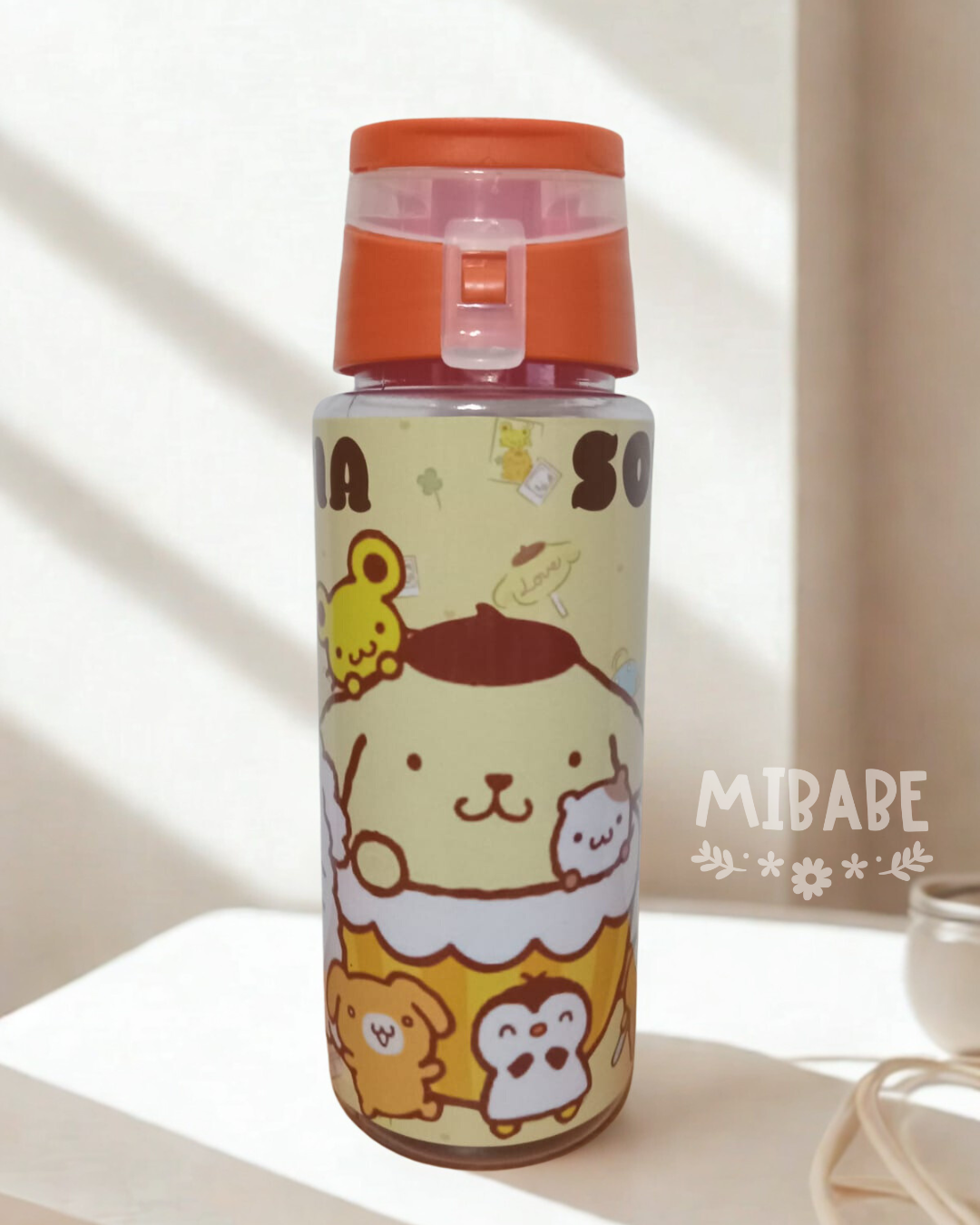Botellas pásticas transparentes con etiqueta de vinilo sublimada- aptas para el agua y lavados.